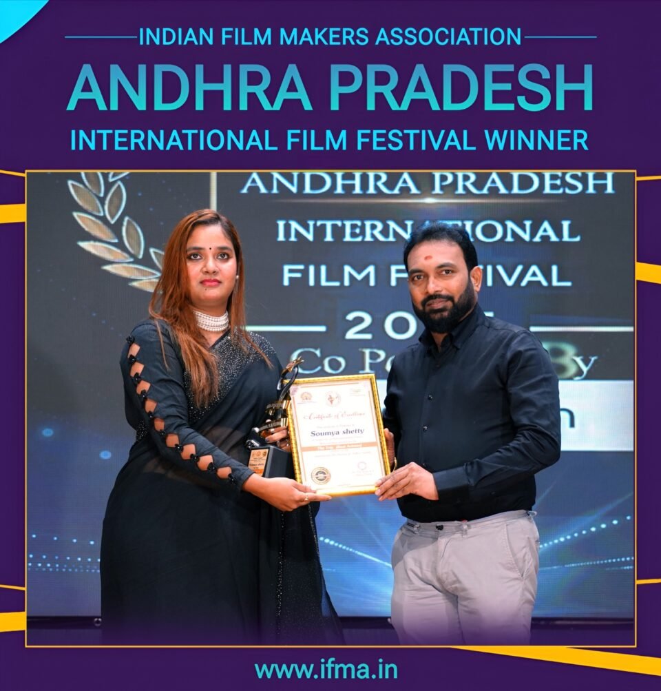 VIJAYAWADA — In a major recognition of regional talent, the Indian Film Makers Association (IFMA) has announced Sowmya Setti as the winner of the Best Actress Award at the Andhra Pradesh International Film Festival. The award was presented during the festival’s ceremony on December 14 in Vijayawada.